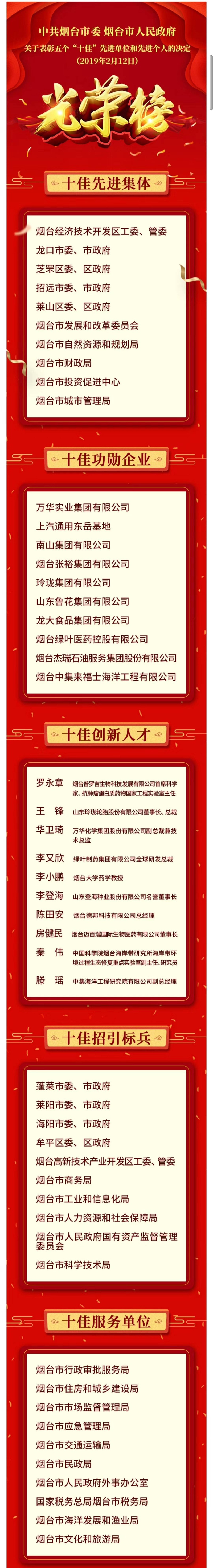 212日,2018年烟台高质量发展总结表彰大会召开。会议隆重表彰了烟台市十佳先进集体、十佳功勋企业、十佳创新人才、十佳招引标兵和十佳服务单位。老子有钱lzyq88食品集团有限公司荣获“烟台市十佳功勋企业”称号。