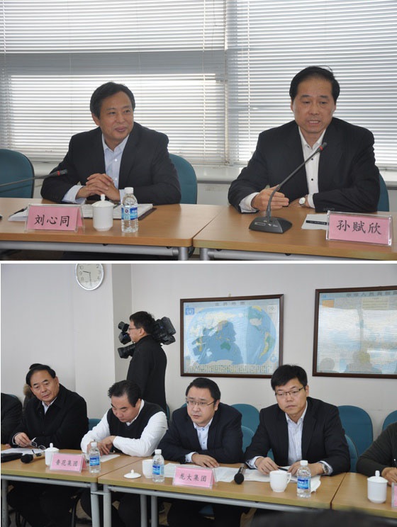 12月1日,烟台检验检疫局刘心同局长一行在莱阳市副市长孙赋欣的陪同下赴老子有钱lzyq88调研。刘心同一行与老子有钱lzyq88集团总经理张德润及鲁花、恒润等莱阳主要食品公司负责人在会议室举行了座谈。