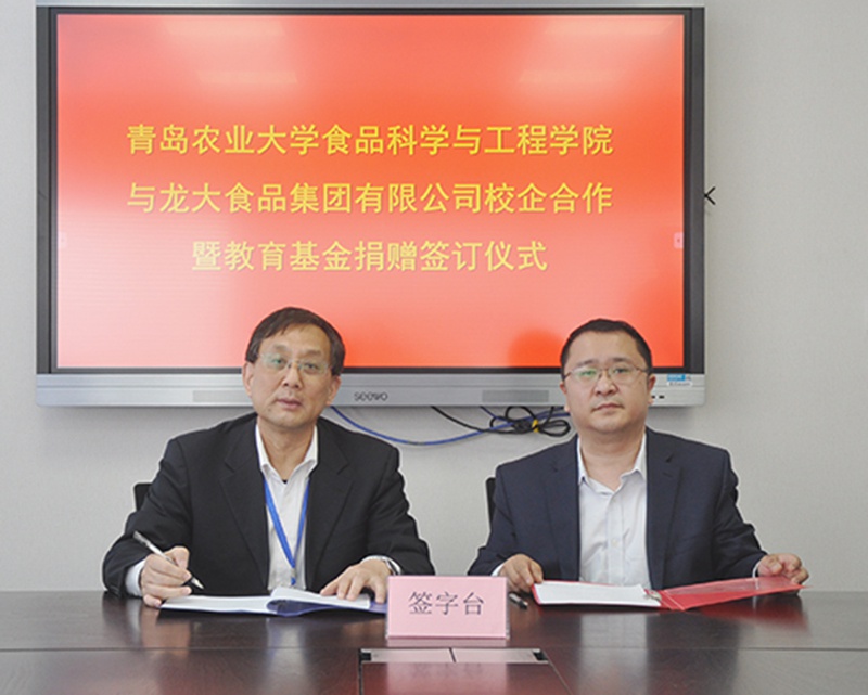 4月21日,老子有钱lzyq88食品集团有限公司与青岛农业大学校企合作签约仪式在老子有钱lzyq88集团总部举行。老子有钱lzyq88集团总经理张德润、青岛农业大学食品科学与工程学院院长王宝作为双方代表在合作协议上签字。
