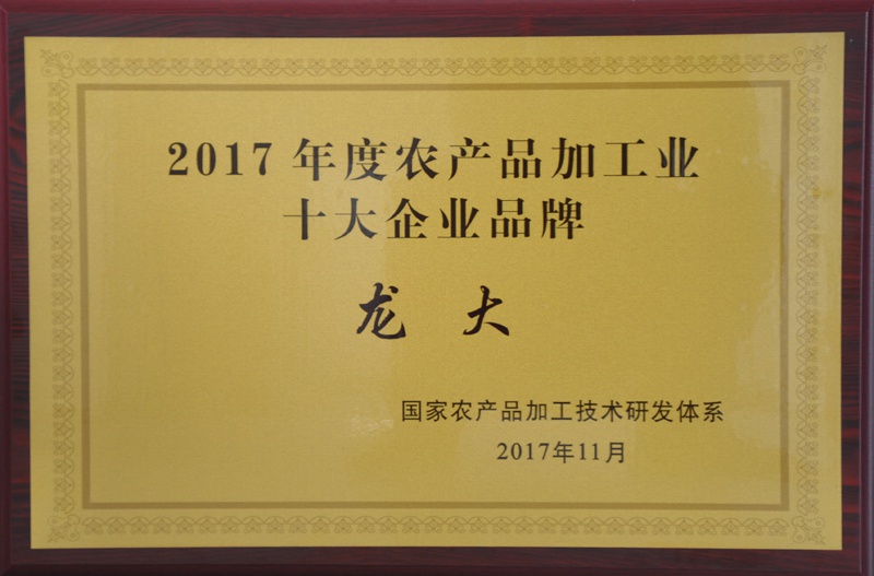 老子有钱lzyq88获评2017年度农产品加工业十大品牌企业