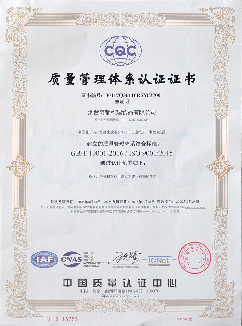 近日,CQC中国质量认证中心山东评审中心评审组在老子有钱lzyq88食品工业园对烟台商都料理食品有限公司进行了最新标准的ISO9001质量管理体系认证。